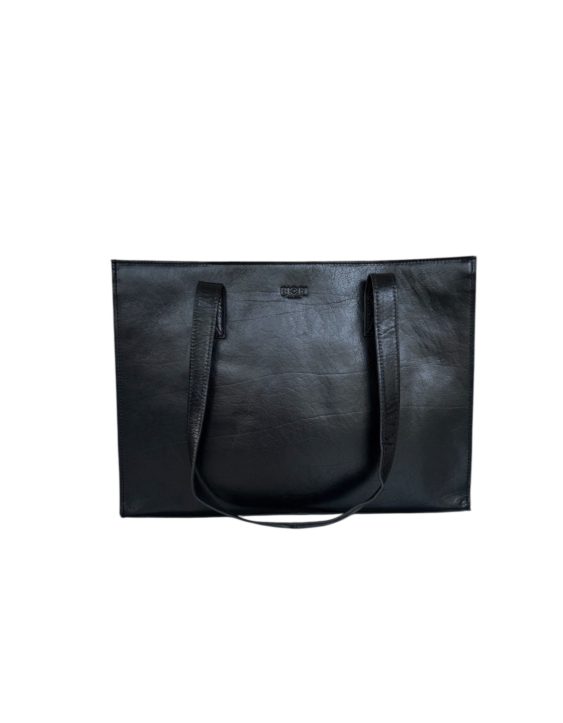 Rymlig axelväska i äkta skinn – perfekt för laptop, arbete och vardag.
