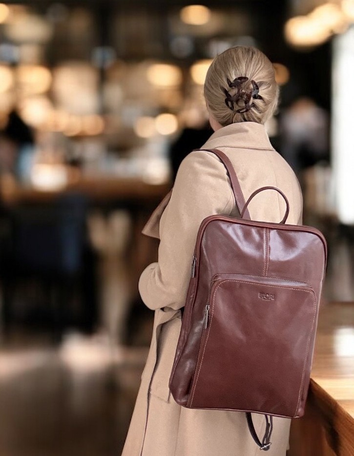 Datorryggsäck skinn Biori 5161B i brunt äkta läder är en efterlängtad nyhet hos oss. Med justerbara axelremmar bär du ryggsäcken smidigt på axlarna men kan även bäras i bärhandtaget. En läder ryggsäck dam som är stilren och klassisk och rymmer en laptop men även en Ipad i de vadderade fickorna.