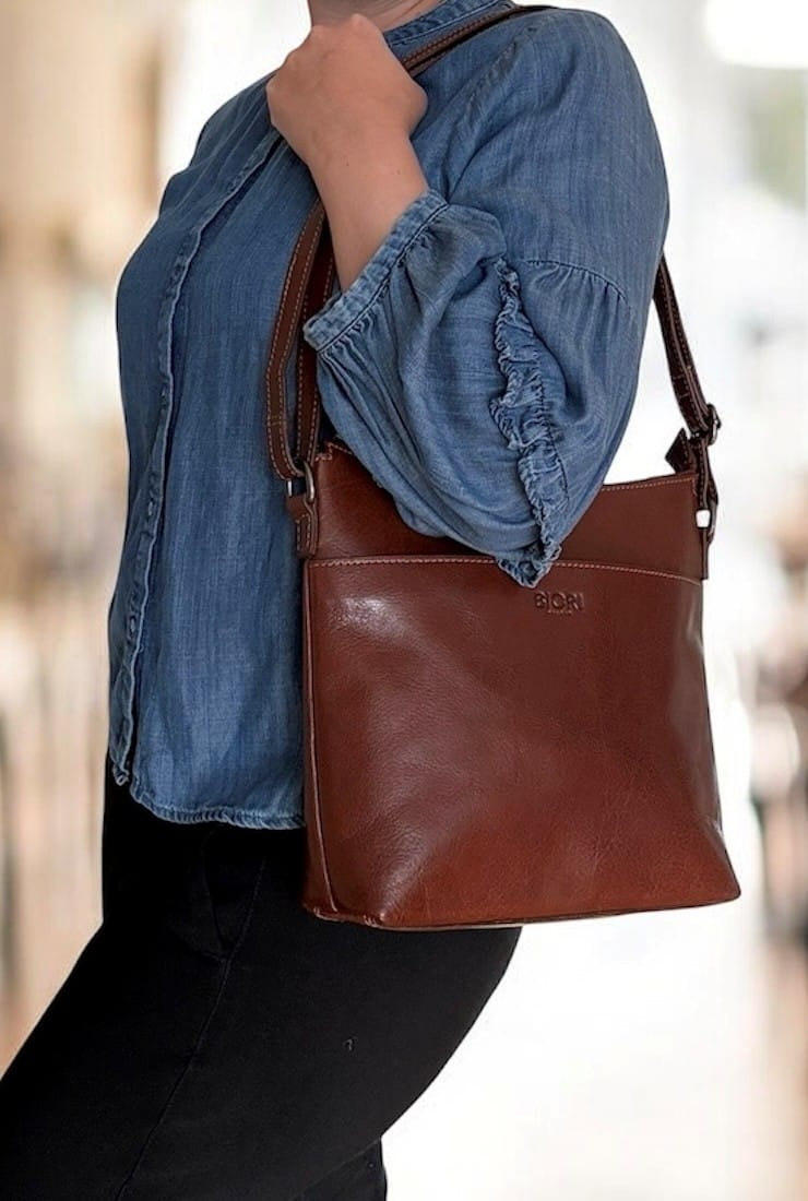 Handväska skinn Biori 5145B är en äkta läder handväska som är utmärkt för daglig användning tack vare sina praktiska fickor och eleganta design. Du kan läsa mer om Biori designen under Om oss  Oavsett om du är på väg till jobbet eller ska träffa vänner, erbjuder denna skinnväska dam både stil och funktionalitet. Denna biori väska finns även i svart Handväska skinn Biori 5145S