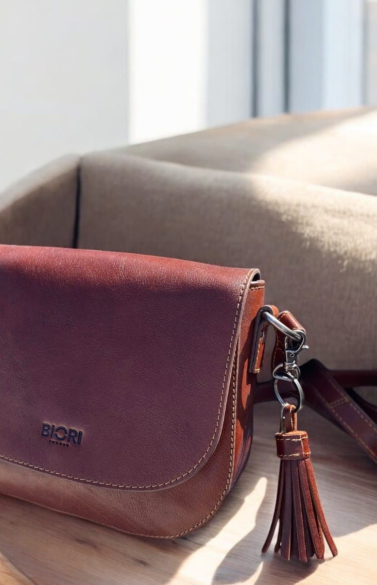 Nyckelring skinn Biori 5132B är en stilren men även en funktionell accessoar tillverkad i äkta brunt läder. Du använder nyckelringen till nycklar eller som ett dekorativt smycke på din biori väska. Nyckelringen är utrustad med en tofs i skinn, en fjäderkrok samt en ring i 100% nickelfri metall, vilket gör den skonsam för dem med nickelallergi.