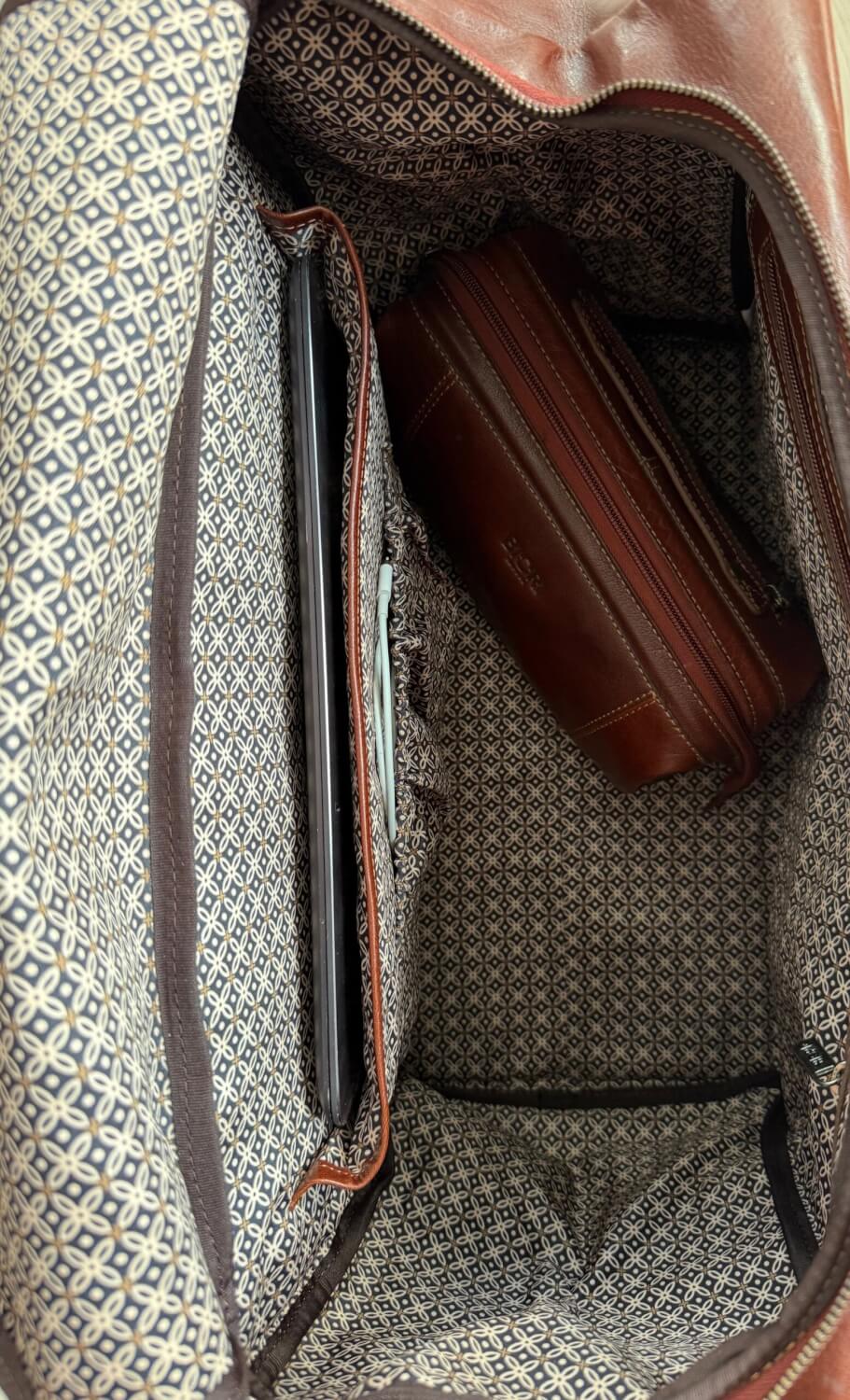 Äntligen en snygg och rejäl väska som jag kan använda som handbaggage vid flygresor. Gillar det mönstrade fodret också. Snabb leverans😊